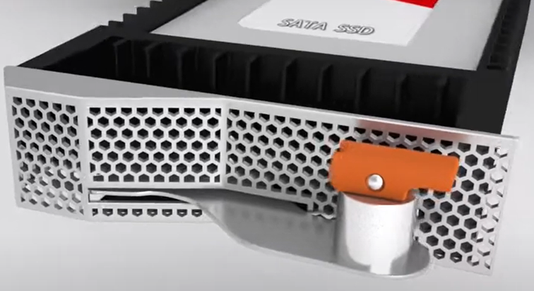(上圖) 將定位柱解鎖後,透過槓桿原理的設計來達到助推及省力效果,輕而易舉就可抽出機箱。