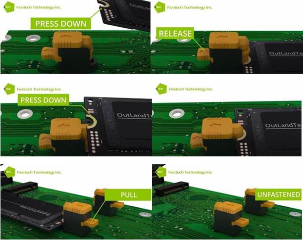 With the fast development of the cloud industry, a large number of data storage devices have become indispensable elements for major cloud companies. In order to create more space-saving and more diverse applications for customers, Fivetech has launched the Double M.2 Board Latch for quick buckle positioning, a revolutionary new product to support the use of SSD.