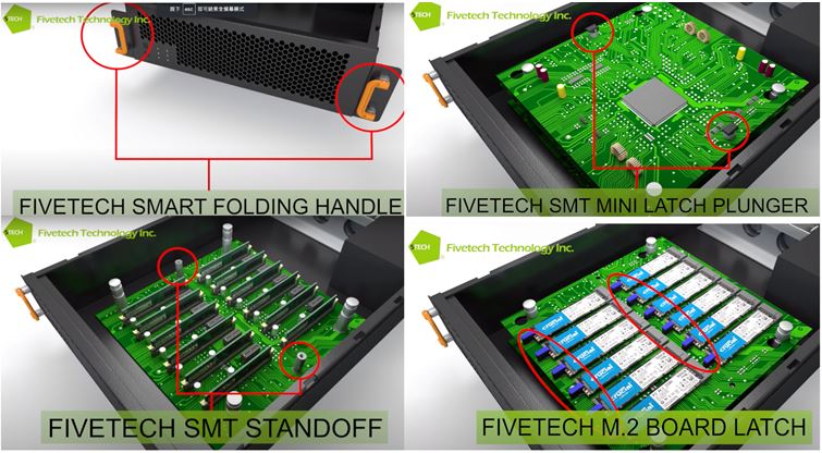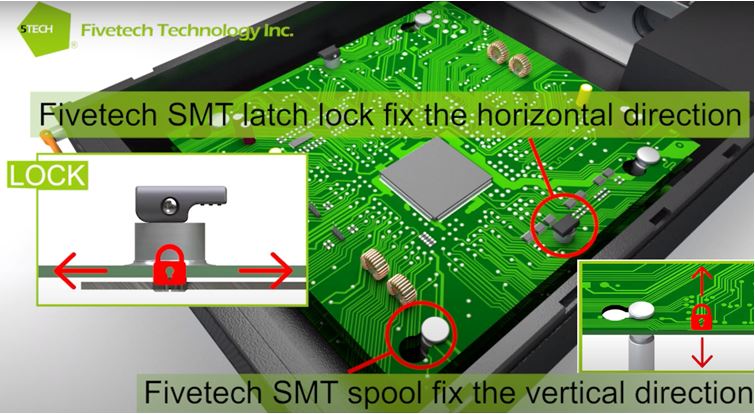 Fivetech provides a complete set of mechanical designs: SMT spool can fix the vertical control plus SMT Latch Lock can fix the horizontal movement, all together which means firmly fixing your board. Our series of creative quick-release mechanism products from the inside out can bring unexpected time-saving and effort-saving effects to your design, also optimize your work efficiency. Welcome to share your idea and discuss with us!