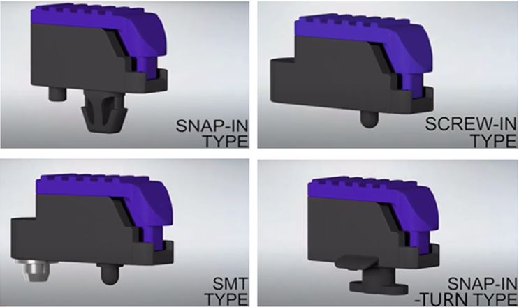 – Snap-in type/Snap-n-turn type/screw-in type/SMT type can be selected according to needs