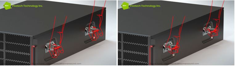 To cope with the huge amount of data, data centers have been set up around the world to store large amounts of information on servers. As the requirements for server chassis become more diverse, Fivetech specially designs a high load-bearing Retractive handle for heavy chassis. A single Retractive handle can bear about 40 kg weight. If you install four Retractive handles as shown in the photo, it is possible to pull a 160 kg chassis, which greatly improves product performance compared to ordinary handles.