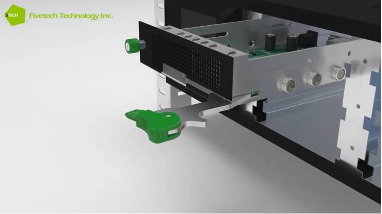 Fivetech Rotate Ejector is a high-intensity All-in-One solution. Its function includes effort saving, handle pulling, automatic hook back and fixed. The special design of pulling can make users remove the connection behind the chassis easily, and with the lever principle, operators can apply it effortlessly. Our design follows ergonomics, while pulling out the Rotate Ejector, the metal part will be the handle, providing the most comfortable operating way. The outside part is the automatic hook back buckle mechanism that has a security function and can lock and unlock with the special internal spring device by simply using one finger in one second. Not only simple and convenient but also intuitive! Last but not least, we can customize different colors to meet your corporate identity and provide a better image for the data center.